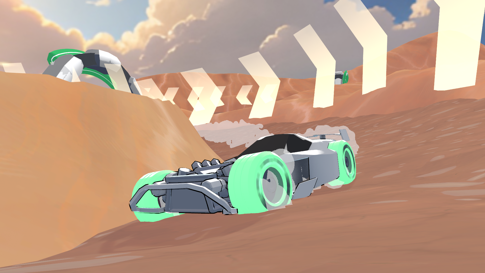 - different surfaces, each with different behaviors - tarmac, water, dirt, and sand